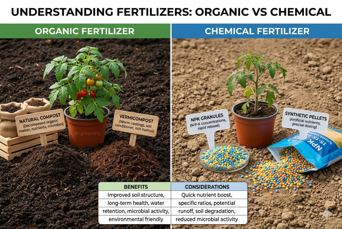 Choosing the right fertilizer is essential for healthy plant growth. While chemical fertilizers provide quick results, organic fertilizers like vermicompost are the best long-term solution.